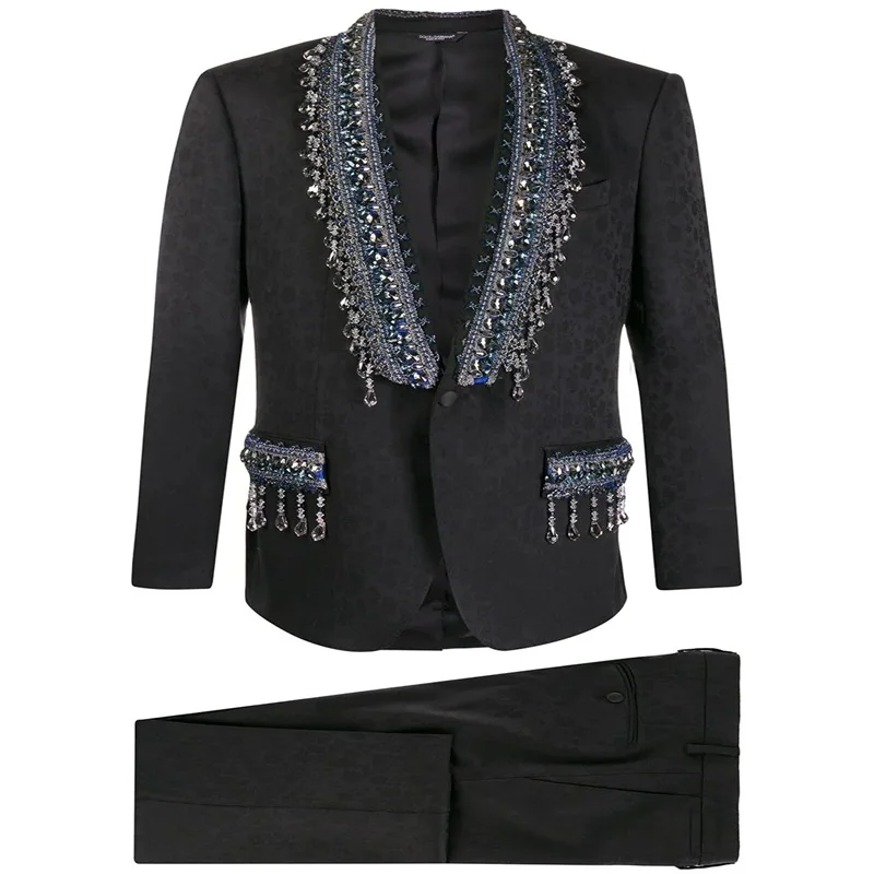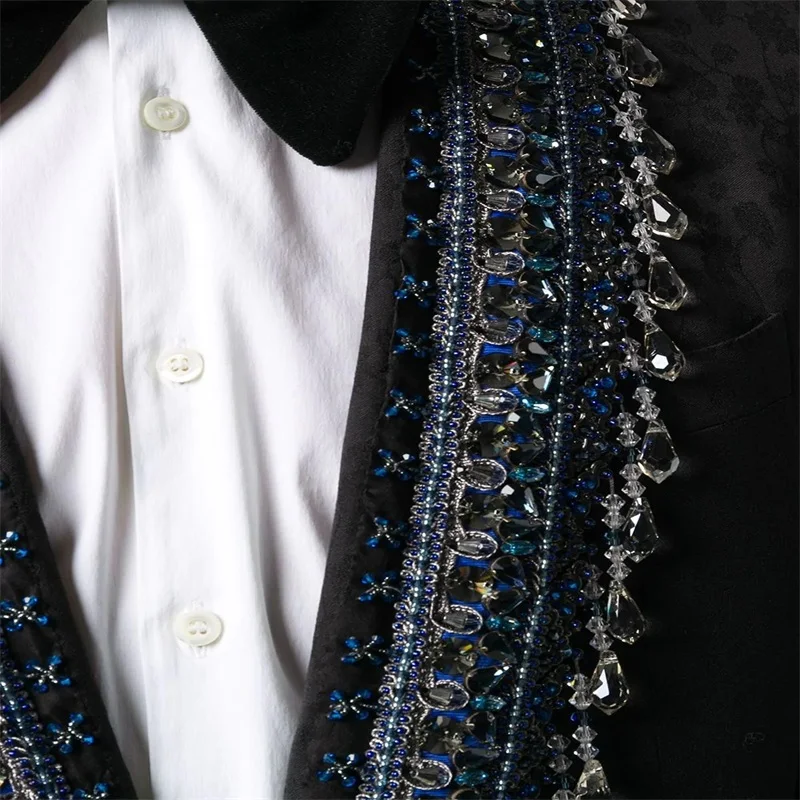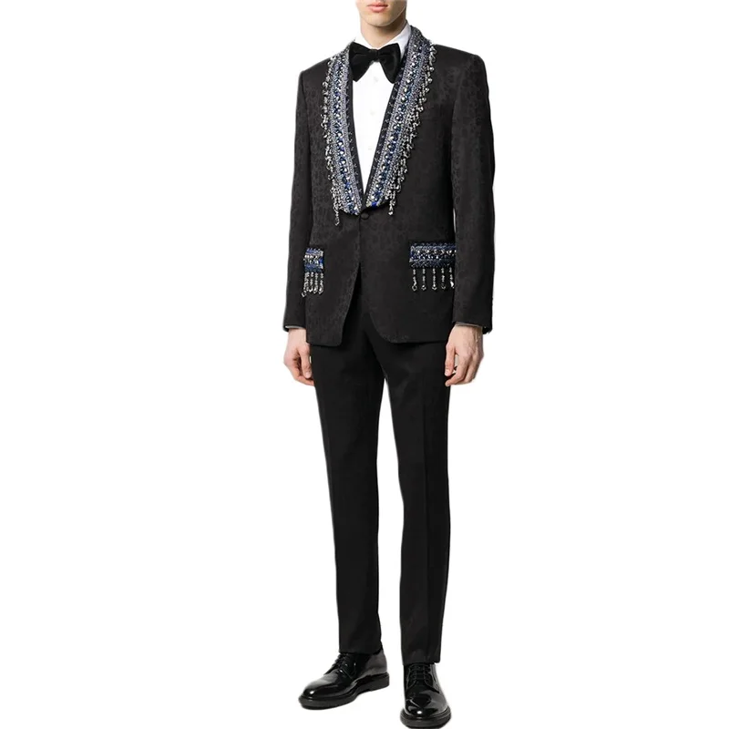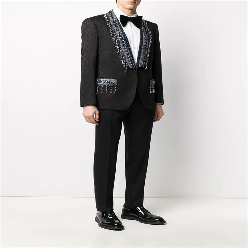 Роскошные мужские костюмы с хрустальными бусинами, черные деловые к...