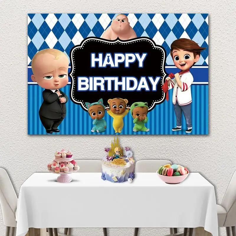 Мультяшный ребенок, когда босс, Синий Блестящий Фон, украшение, 3D ...