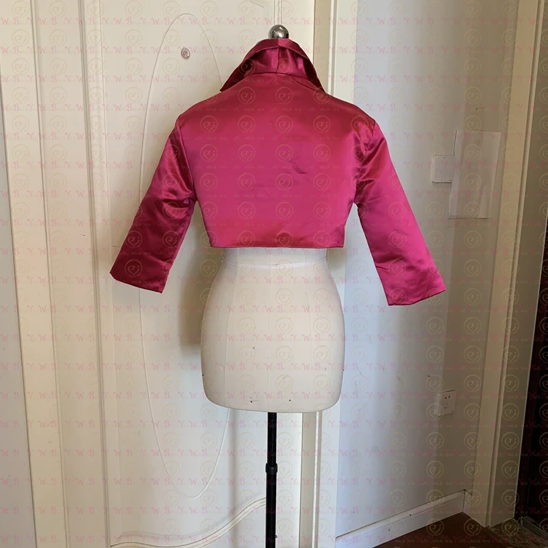 Розовое Атласное свадебное болеро 2021, женский жакет невесты с рукавом 34, воротник, женский топ для вечеринки на заказ