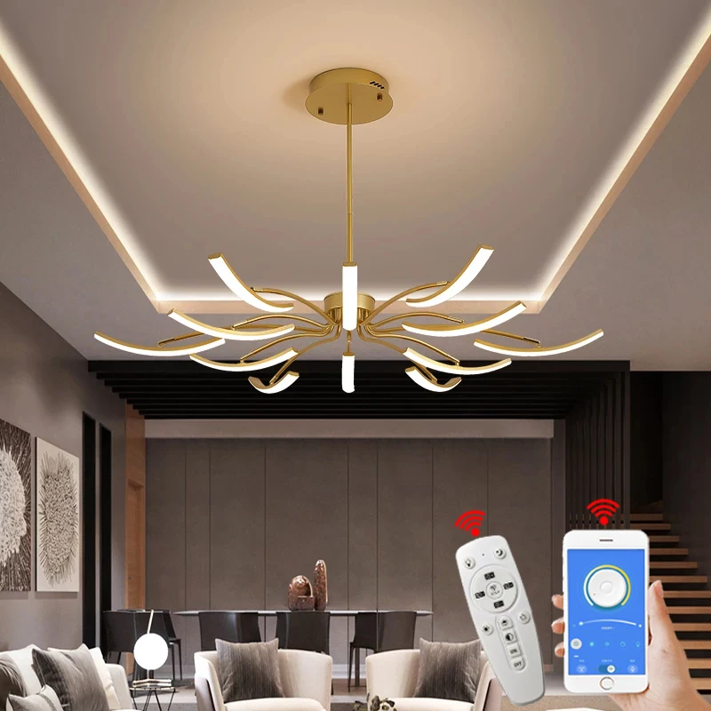 Люстра Светодиодная, черногобелогозолотого цвета, с дистанционным управлением через приложение, для гостиной, спальни, AC90-260V