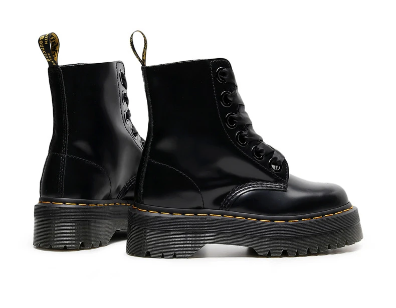 Осенне-зимние новые черные блестящие женские Ботинки Martin женская обувь модные повседневные кожаные ботинки большого размера обувь на высокой платформе