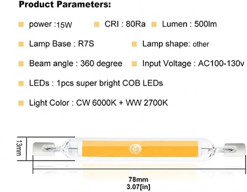 Страна: RU Emitting Color: Warm white Color: 220V Wattage: 15W 78MM Доставка: Standard Shipping 11.10.2021