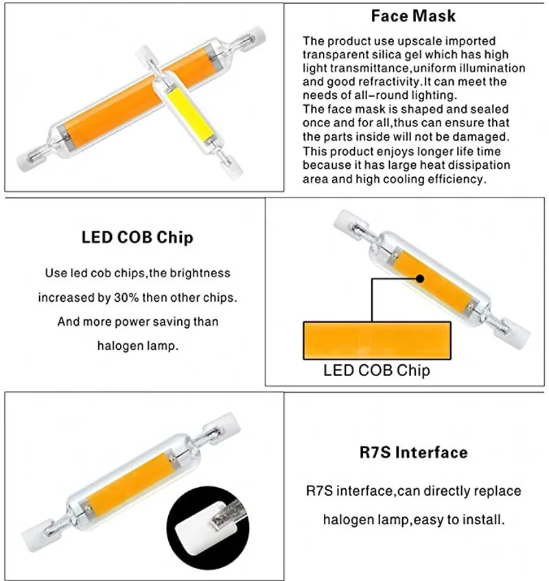 Светодиодсветодиодный лампа R7S 78 мм 15 Вт 20 Вт R7S Точечный светильник 118 мм 30 Вт 40 Вт 50 Вт 110 В 220 В COB лампа стеклянная трубка Замена 30 Вт 50 Вт 100 Вт галогеновая лампа освещение