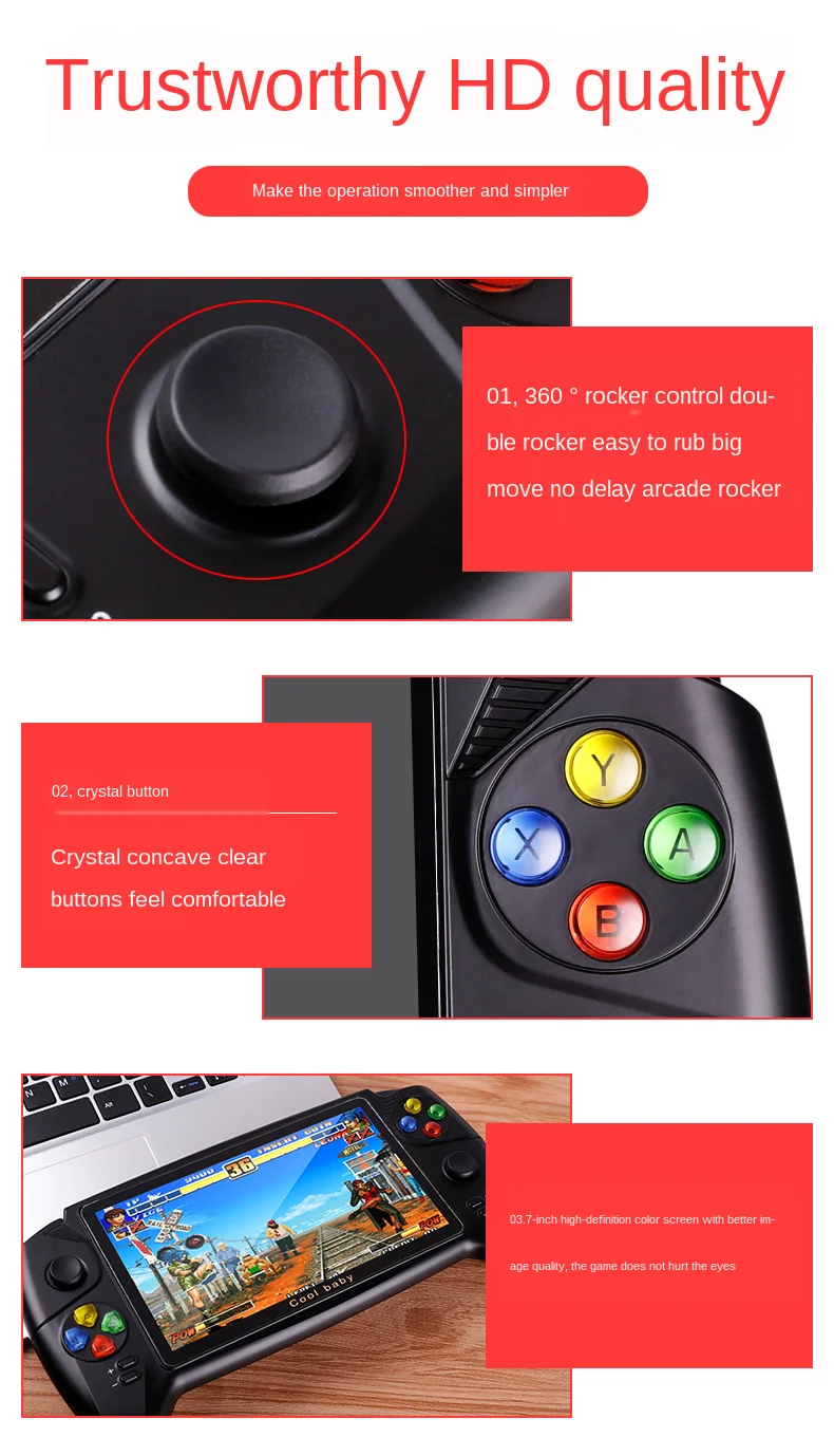 Портативные игровые приставки Ewwke, Классическая игровая консоль с рукояткой 7,0 дюйма в стиле ретро, двойные джойстики для игроков PSP GBA NES FC