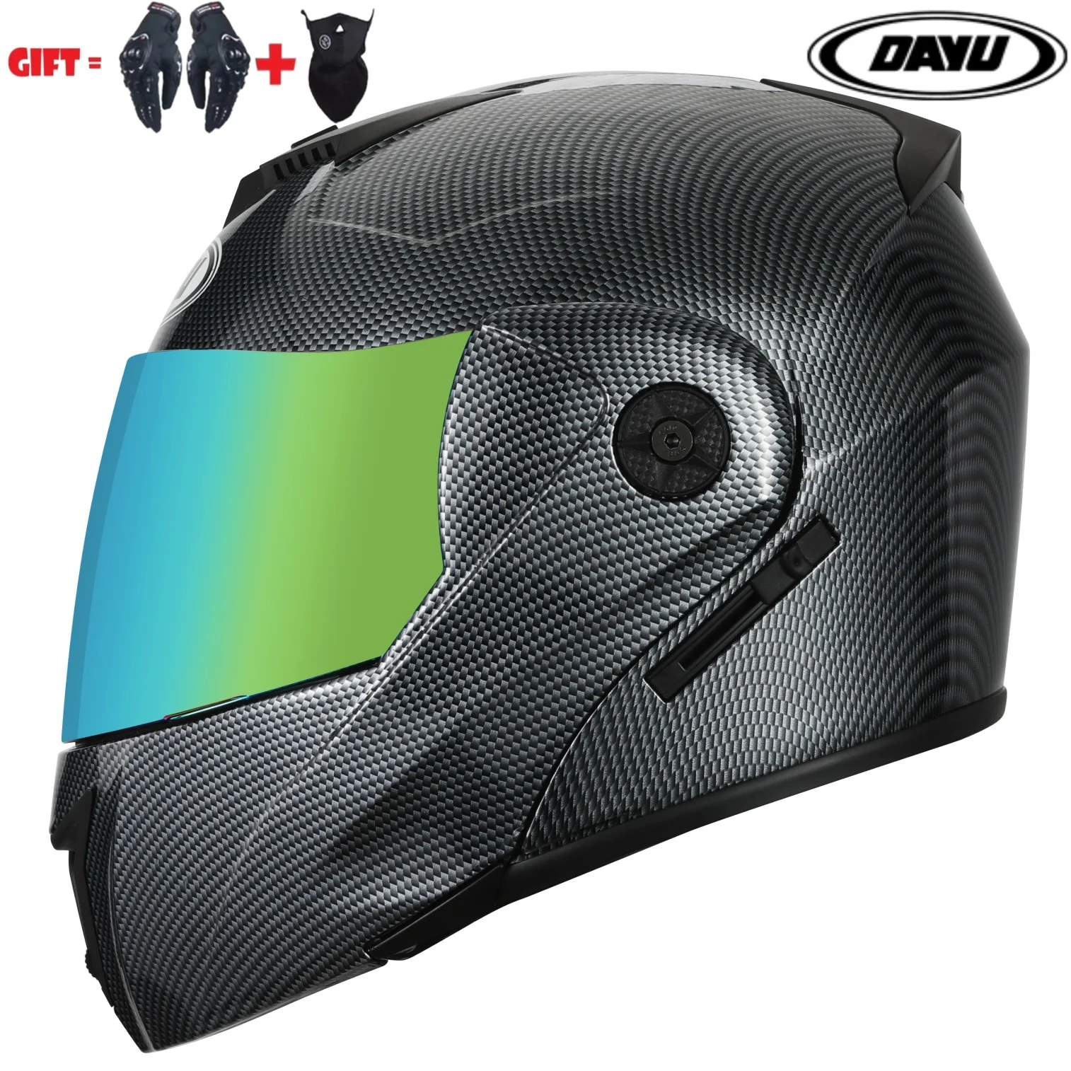 Мотоциклетный шлем, откидной модульный шлем с двойным козырьком, закрытый шлем для мото-Кросса