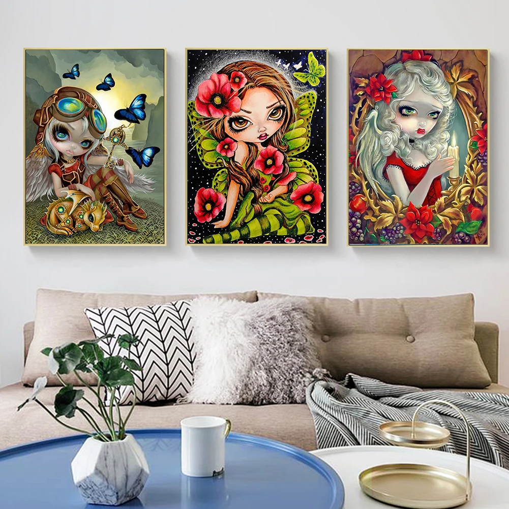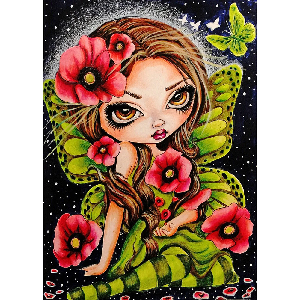 5D алмазная живопись, мультяшная девушка, кукла, сделай сам, полностью круглая Алмазная картина, украшение для дома, подарок, подвесная картина 30x40 см