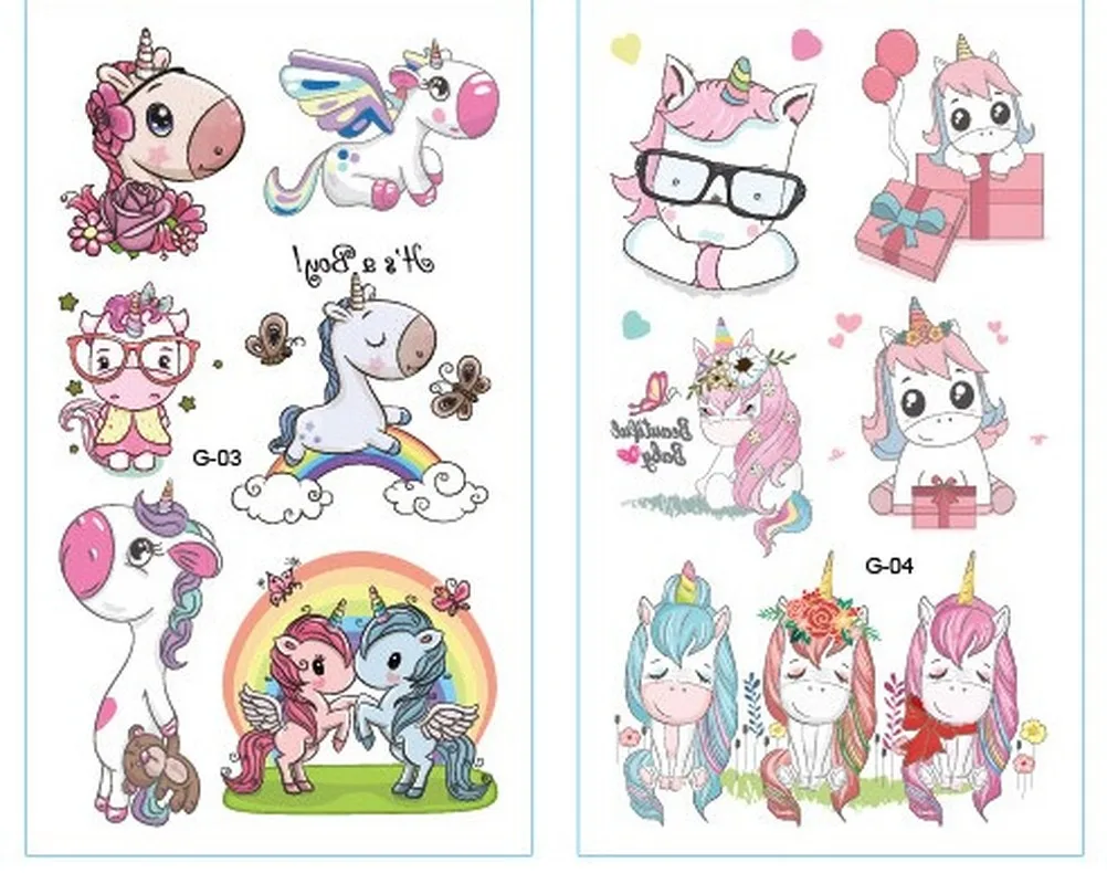 10 шт.лот наклейки-татуировки для детей единорог животные мультфильм лошадь Дети Медведь Лев Радуга Единорог Дети Сердце Луна искусственные татуировки