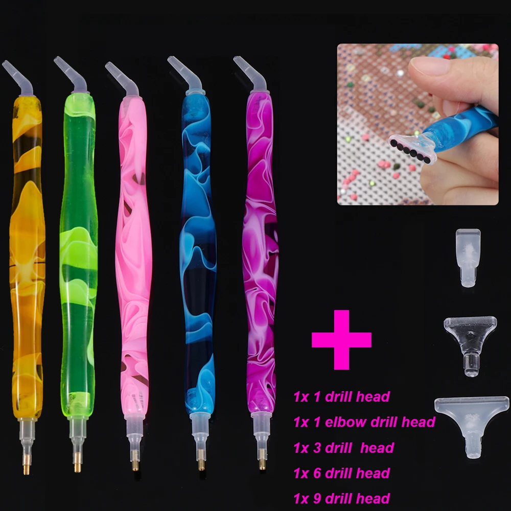 Спиральная ручка с цветами из смолы для алмазной живописи, двойная головка, ручка для алмазной живописи 5D, вышивка крестиком, инструмент для творчества и дизайна ногтей
