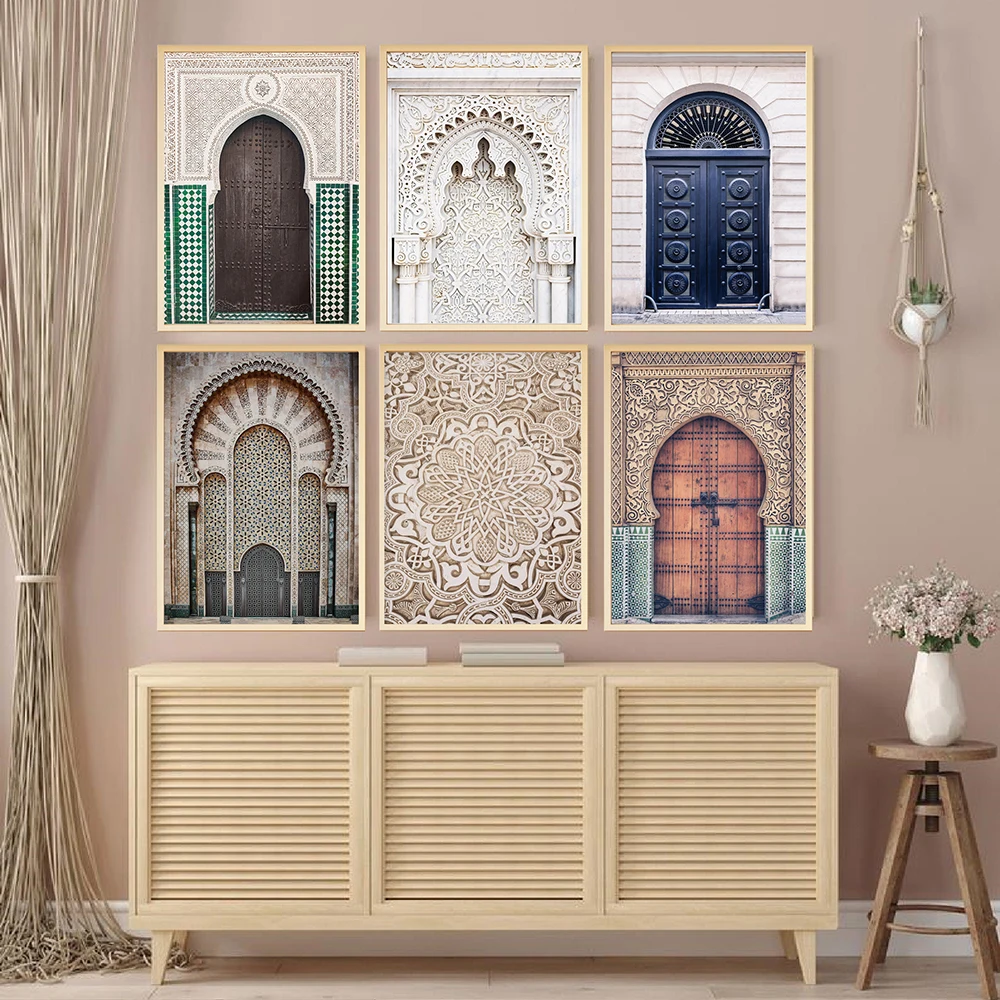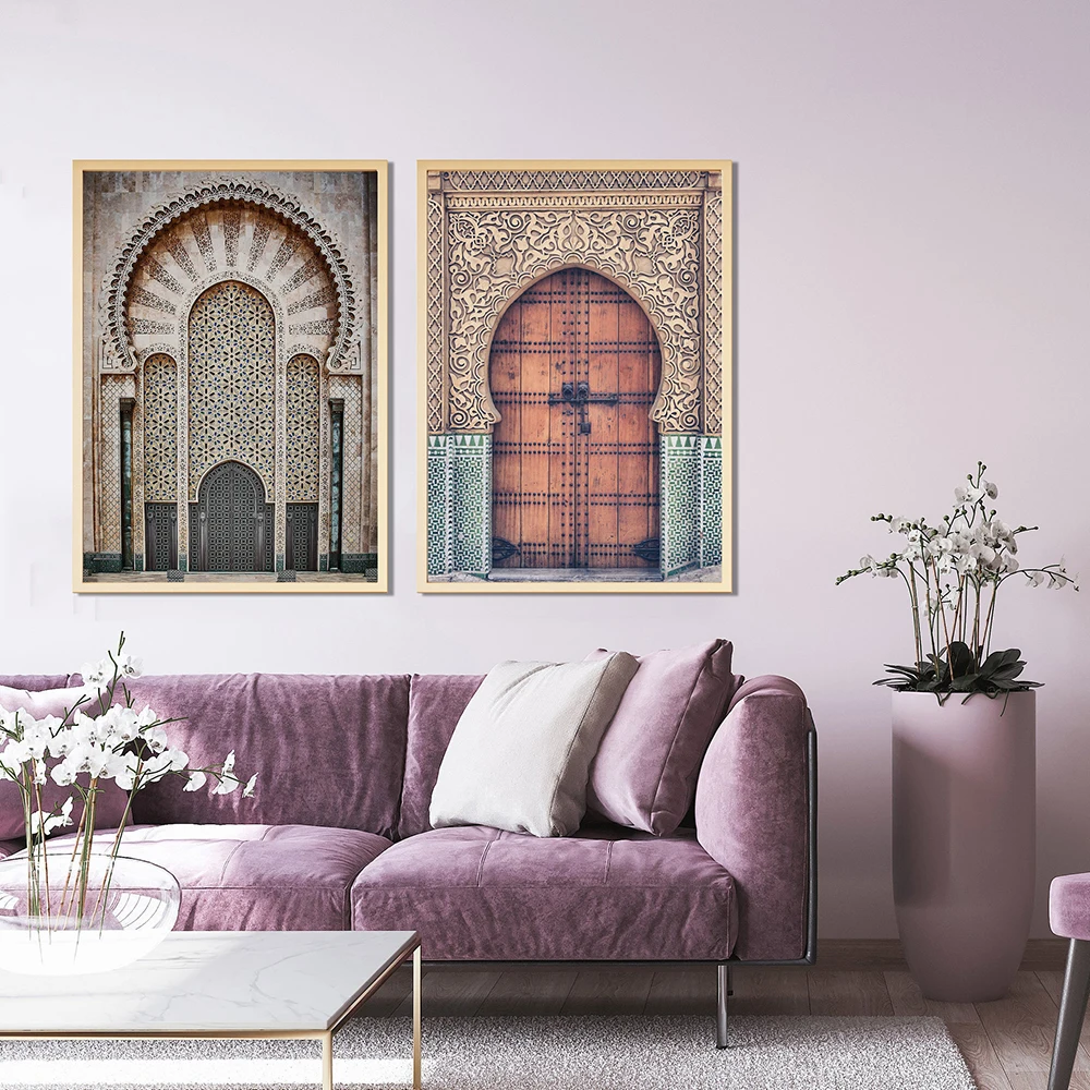 Марокканская Арка старая дверь Холст Картина исламское здание настенный художественный плакат Бохо II мечеть печать мусульманская фотография