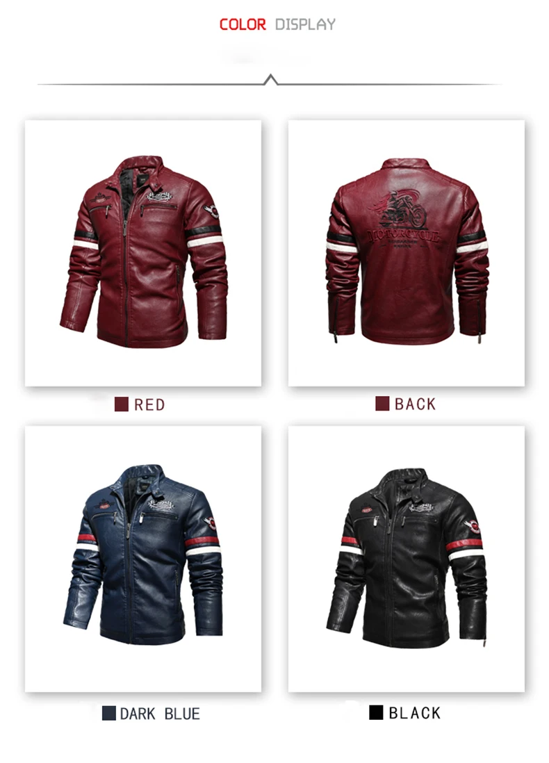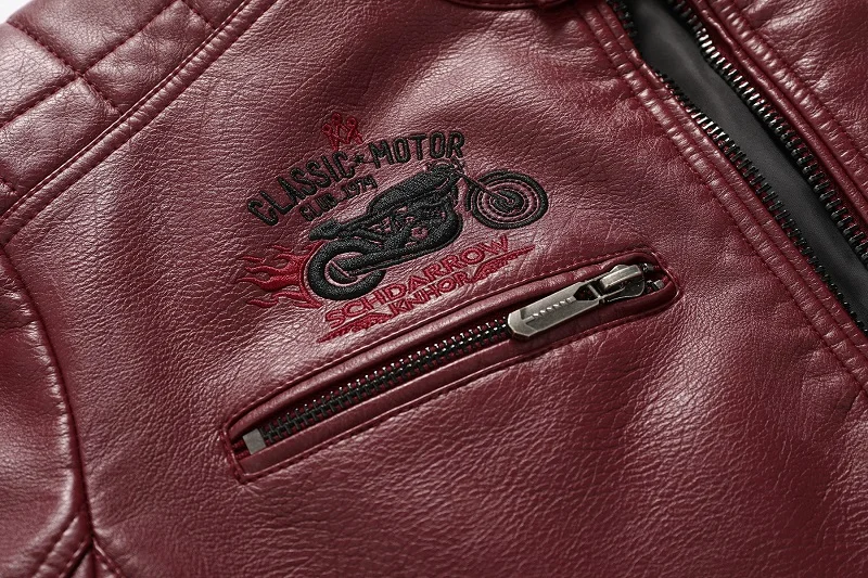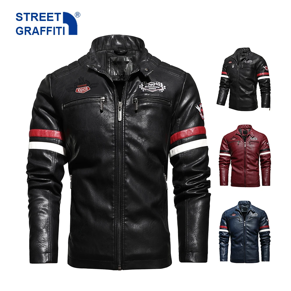 Мужская мотоциклетная куртка, из искусственной кожи, с вышивкой, на молнии, на осень-зиму, 2021