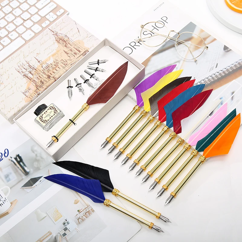 Ручка из нержавеющей стали с натуральными перьями, офисный набор, и...