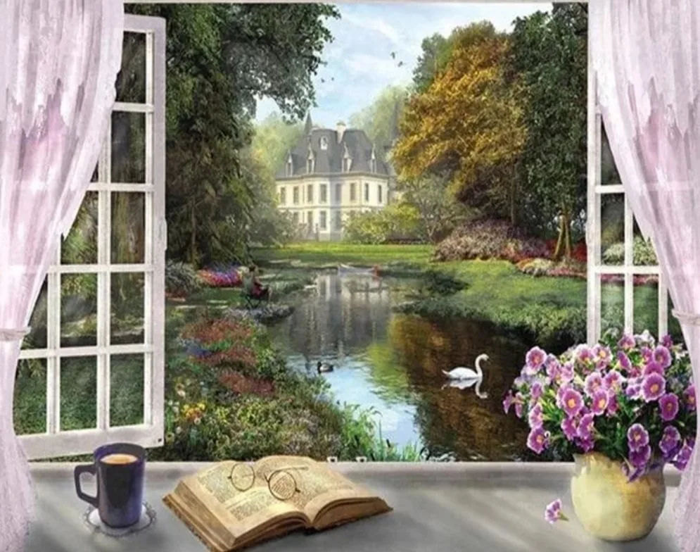 Алмазная 5D картина RUOPOTY сделай сам, полноразмерная вышивка с пейзажем, окошком, вышивка крестиком, набор для морской мозаики, домашний декор
