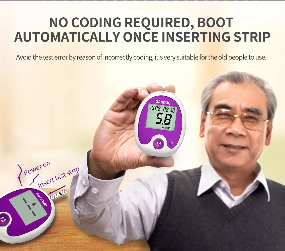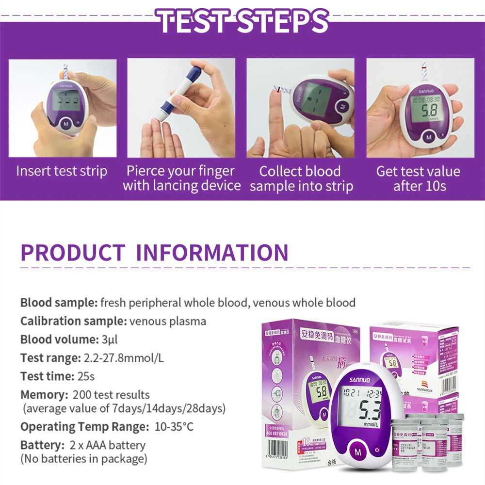 Sinocare Новый отсутствует кодированный для измерения уровня глюкозы в крови монитор комплект с Тесты полоски Тесты точный для диабета, глюкометр для измерения уровня глюкозы в + бесплатная Портативный сумка