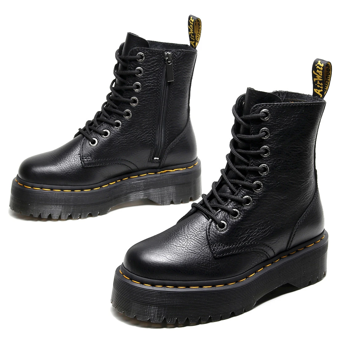 Новые стильные женские черные ботинки Martin больших размеров на осень и зиму, женская обувь, модные повседневные кожаные ботинки, обувь на высокой платформе