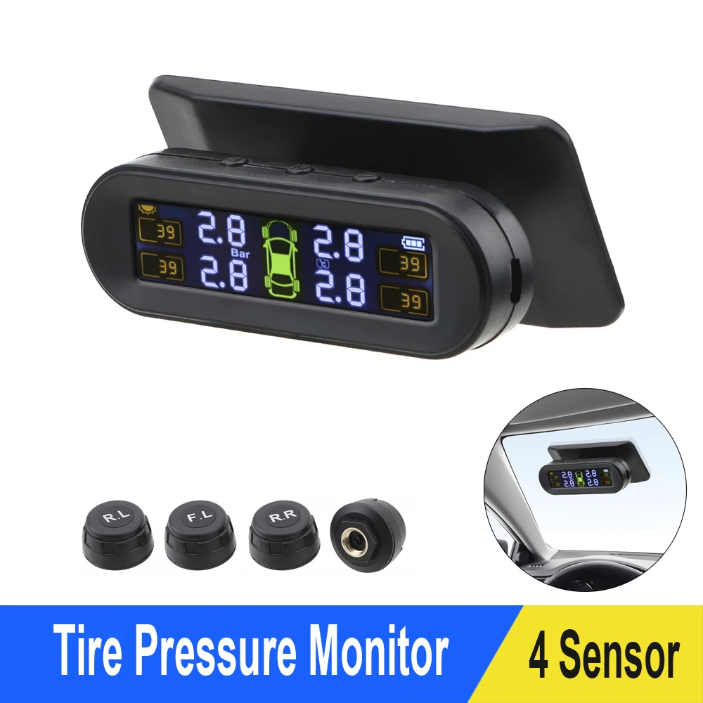 Система мониторинга давления в шинах TPMS, система контроля давления в шинах с 4 внешними датчиками и сигнализацией, экономия топлива на солнечной батарее
