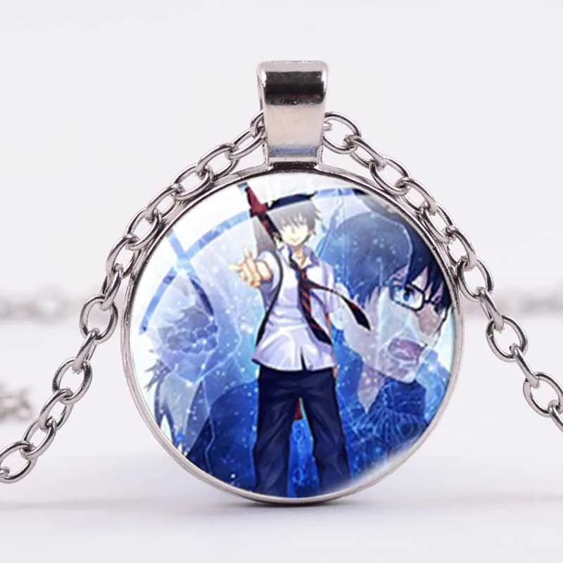 Ожерелье с синим экзорцистом из аниме Ao no Exorcist Rin Okumura, Классический мультяшный узор, стеклянный кабошон, подвеска, чокер, женское ювелирное изделие в подарок