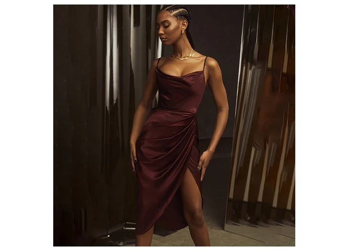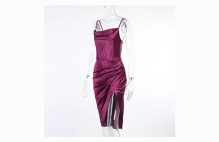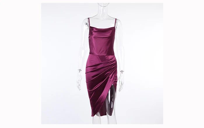 Атласное платье 4 #, приталенное однотонное сексуальное платье с ра...