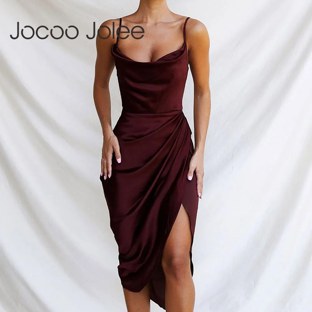 Jocoo Джоли Женская летняя обувь в европейском и американском стиле, сексуальное платье с v-образным воротом, высота боковой Разделение Тонкий темперамент платье на лямках