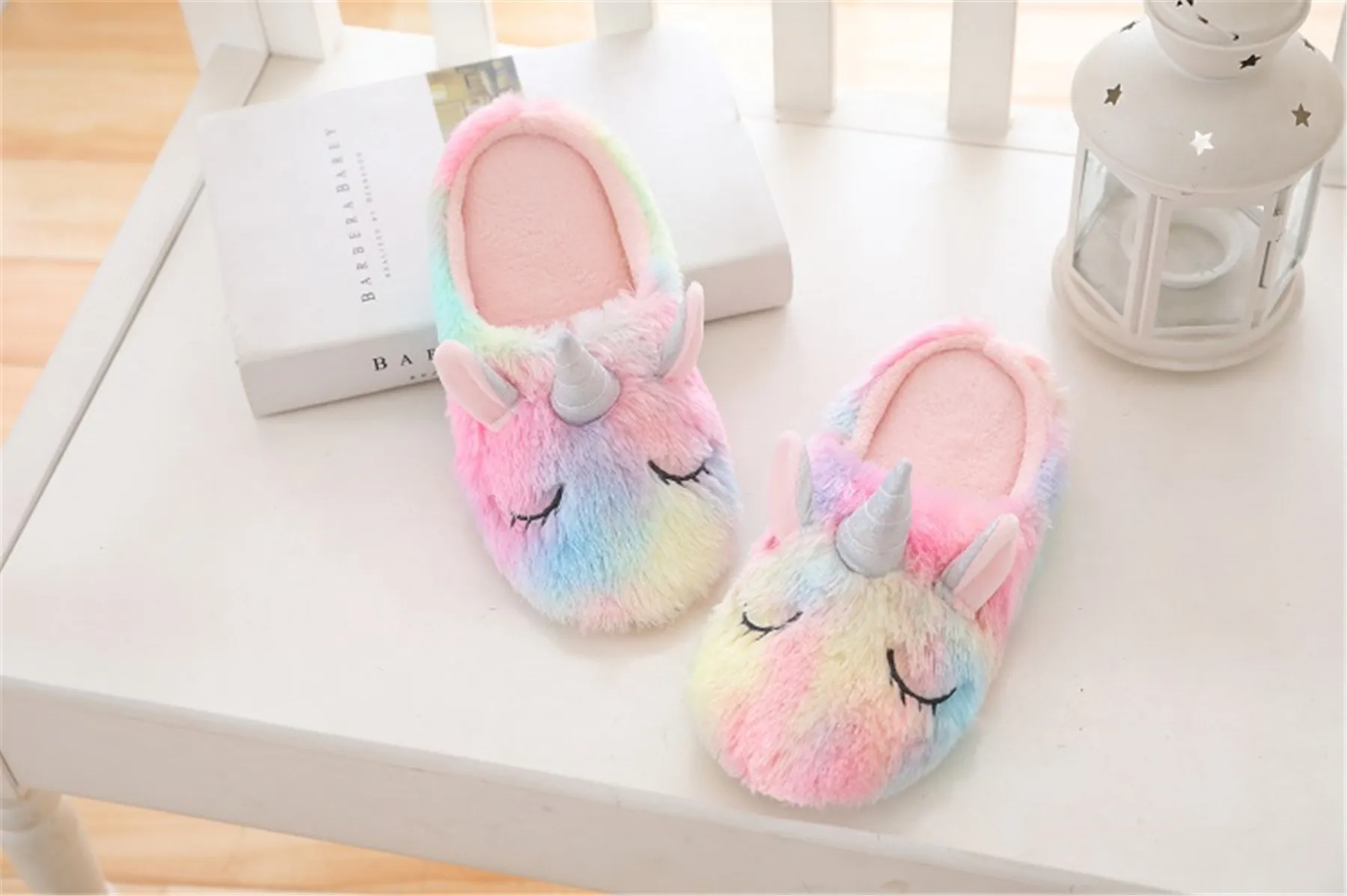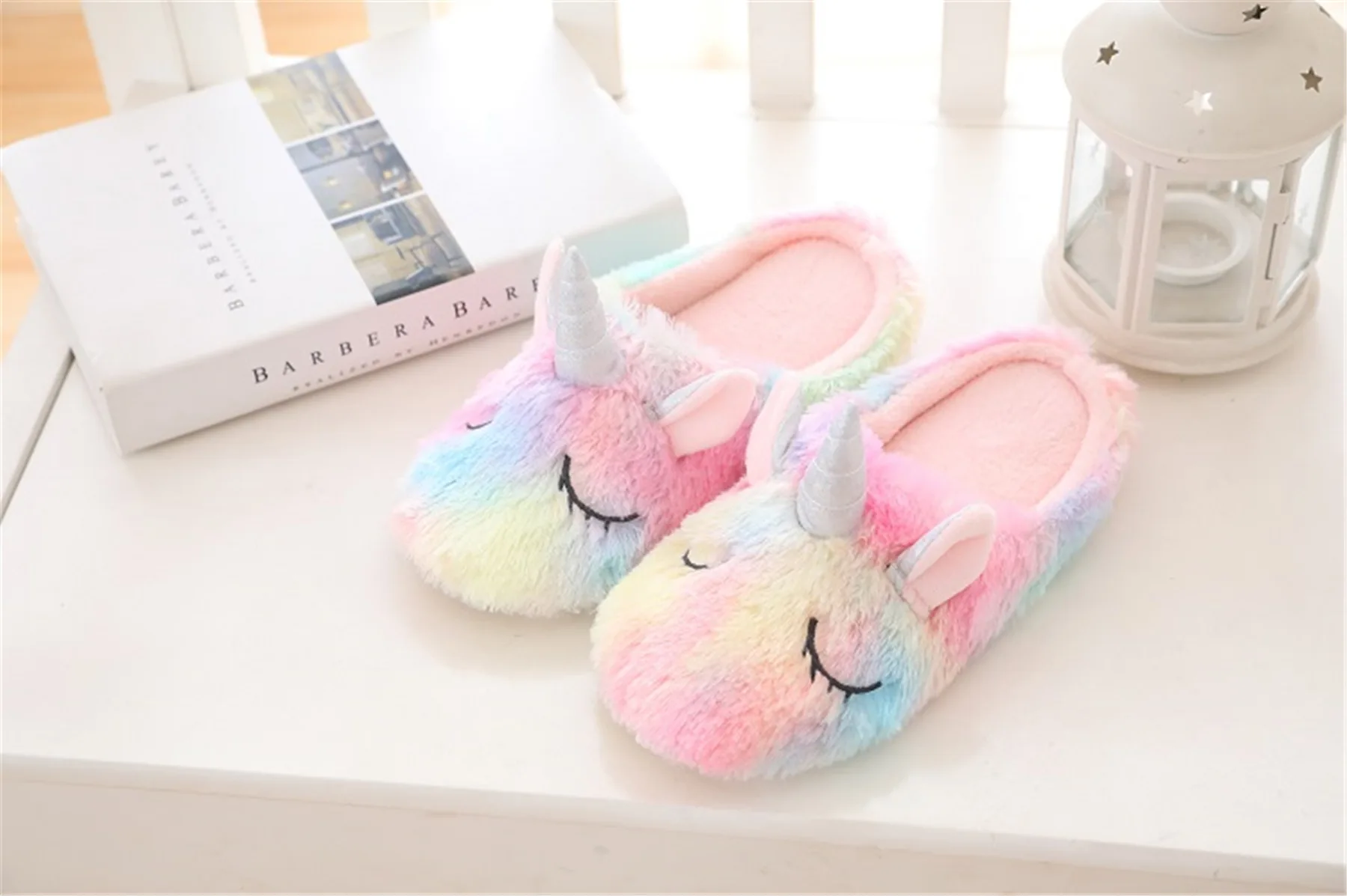 Тапочки-единороги многоцветный героев Радуга уютные домашние тапочки; Теплые плюшевые домашние тапочки с кошечкой из мультфильма; Женские тапочки животных домашние тапочки по мотивам мультфильмов обувь