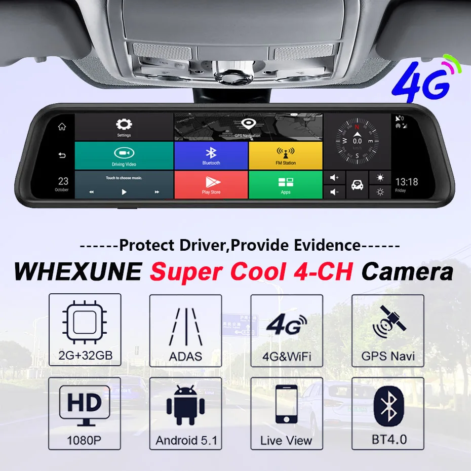 Автомобильный видеорегистратор WHEXUNE, 4G, 12 дюймов, 4-канальный ...