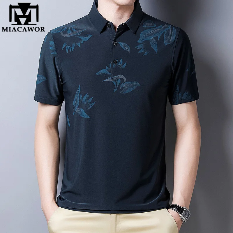 Футболка-поло MIACAWOR мужская с принтом, модная Облегающая рубашка с коротким рукавом, повседневная майка-поло, T987, на лето
