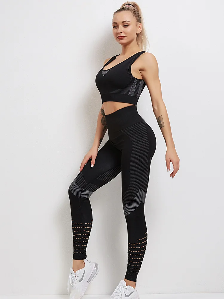 Женский спортивный комплект для йоги, одежда для тренировок, спортивная одежда, спортивный тренажерный зал, фитнес-костюмы, леггинсы с высокой талией и спортивный бюстгальтер