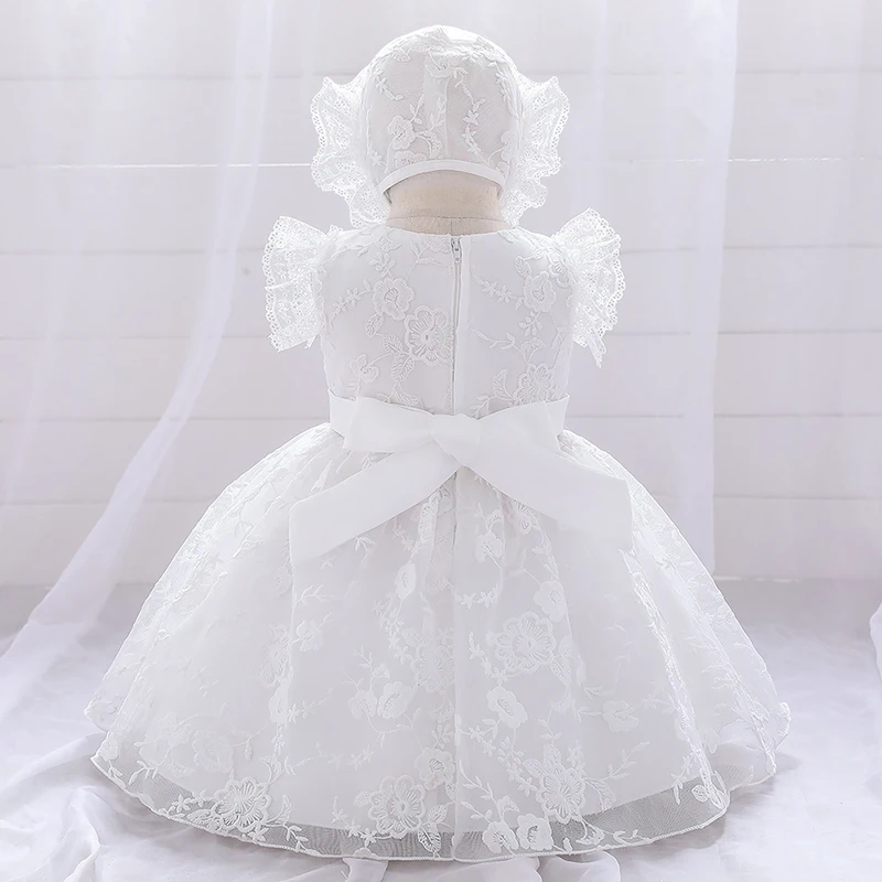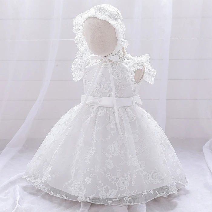 Платье принцессы для новорожденных девочек, кружевное платье с цветочной вышивкой для дня рождения, летнее праздничное платье для маленьких девочек
