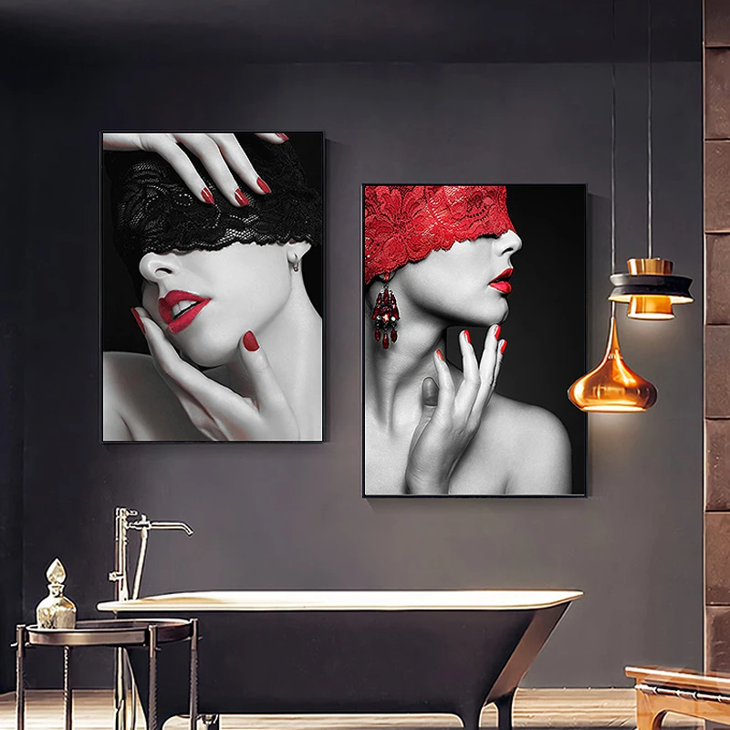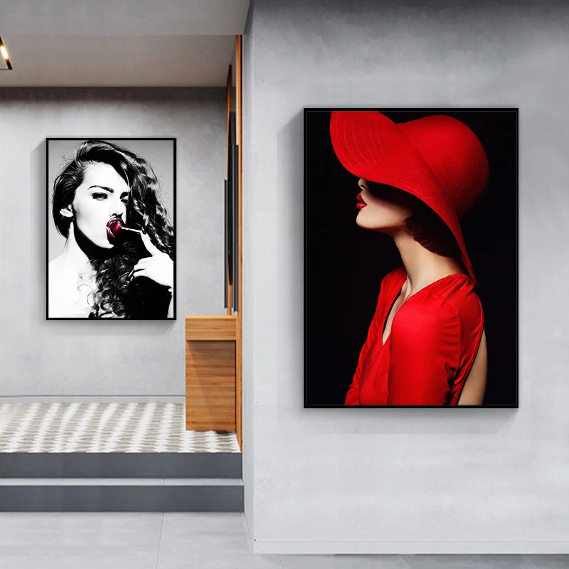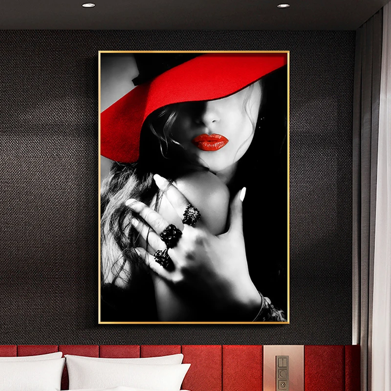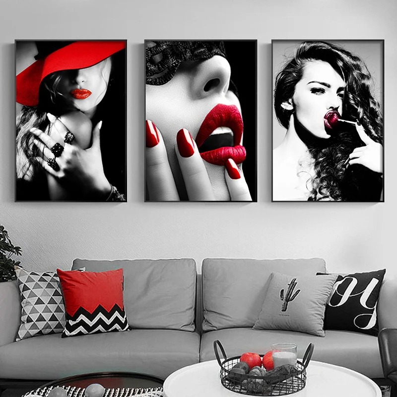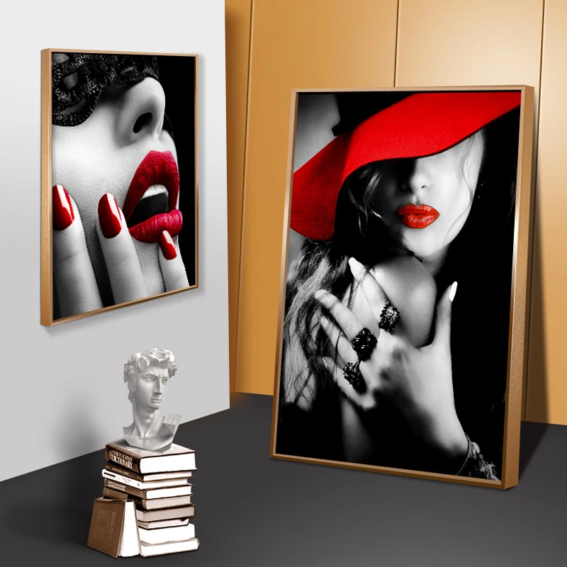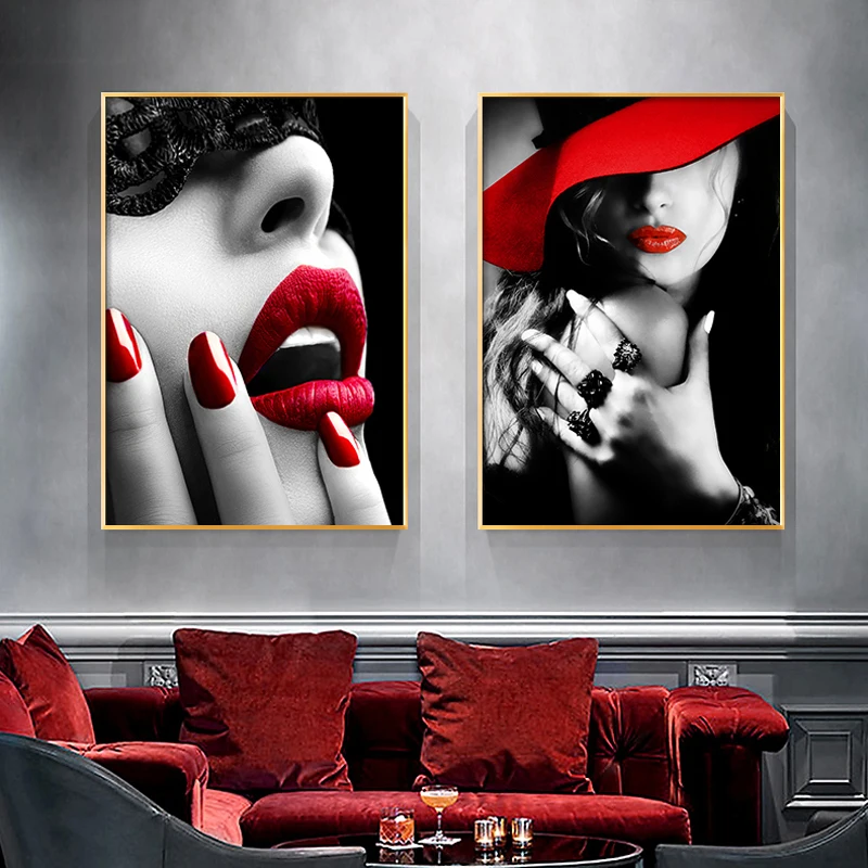Современные красивые Nordic Плакаты девушка в виде красных губ для ногтей пикантные Для женщин Картина на холсте из искусственного искусства печать, Картина Настенная для Украшения в спальню