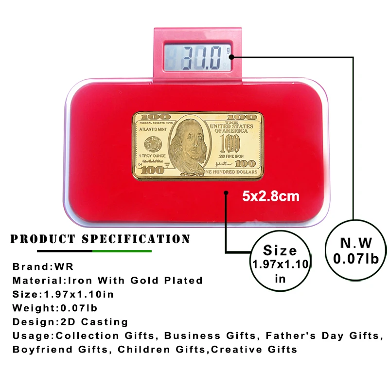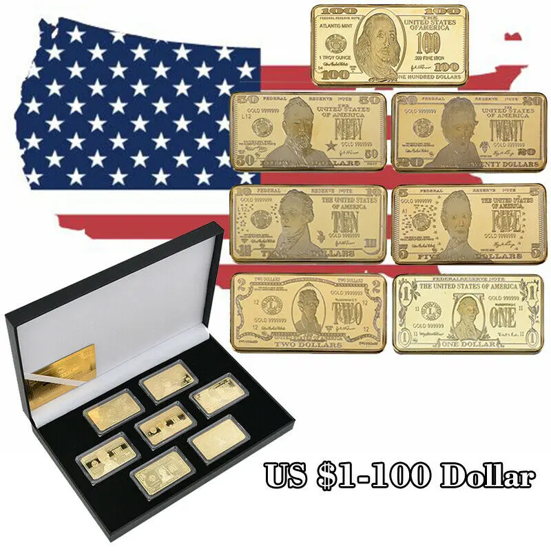 Позолоченный металлический барный набор в коробке, американские сборники, вызов, монета, слитки, сувенирные подарки для мужчин, Прямая поставка