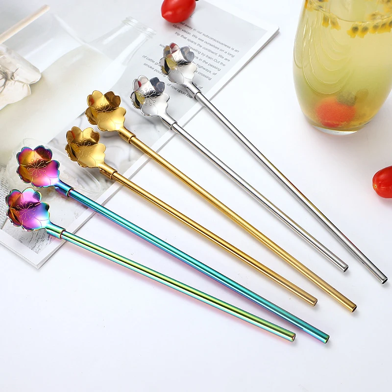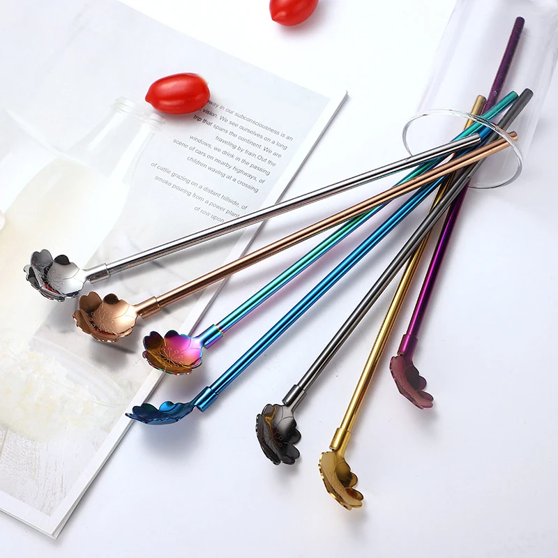 Многоразовые питьевые соломинки из нержавеющей стали, разноцветная металлическая зеркальная ложка для перемешивания молока, кофе, инструменты для перемешивания