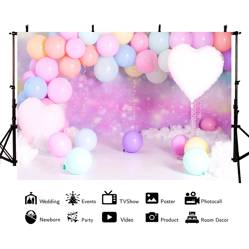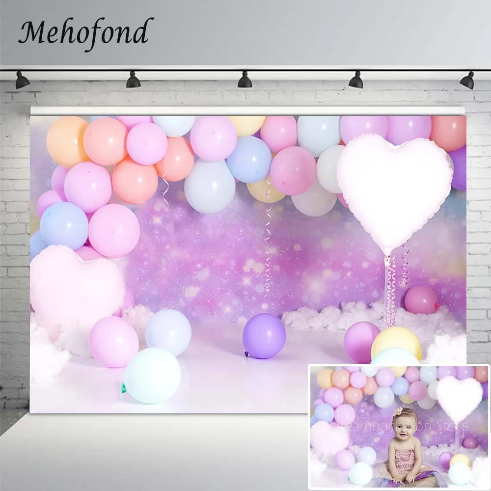 Фон для фотосъемки Mehofond, день рождения, вечеринка, вечеринка в честь рождения, торт, любовь, воздушные шары, розовый фон для новорожденных фотосессия Фотостудия