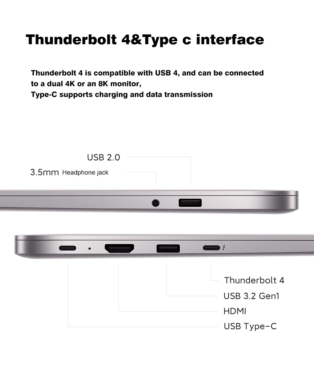 Интерфейс USB-C x 1, поддерживает зарядку и передачу данныхThunderbolt 4x1Порт USB 2,0x1Порт USB 3,2 Gen1 x 13,5 мм разъем для наушников микрофона-1 шт.HDMI порт x 1
