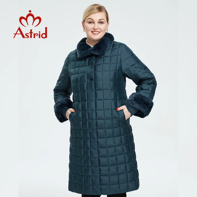 2021 Астрид зимняя куртка для женщин с меховым воротником дизайнерская длинная толстая хлопковая одежда модная сетка узор теплая Женская парка FR-2040
