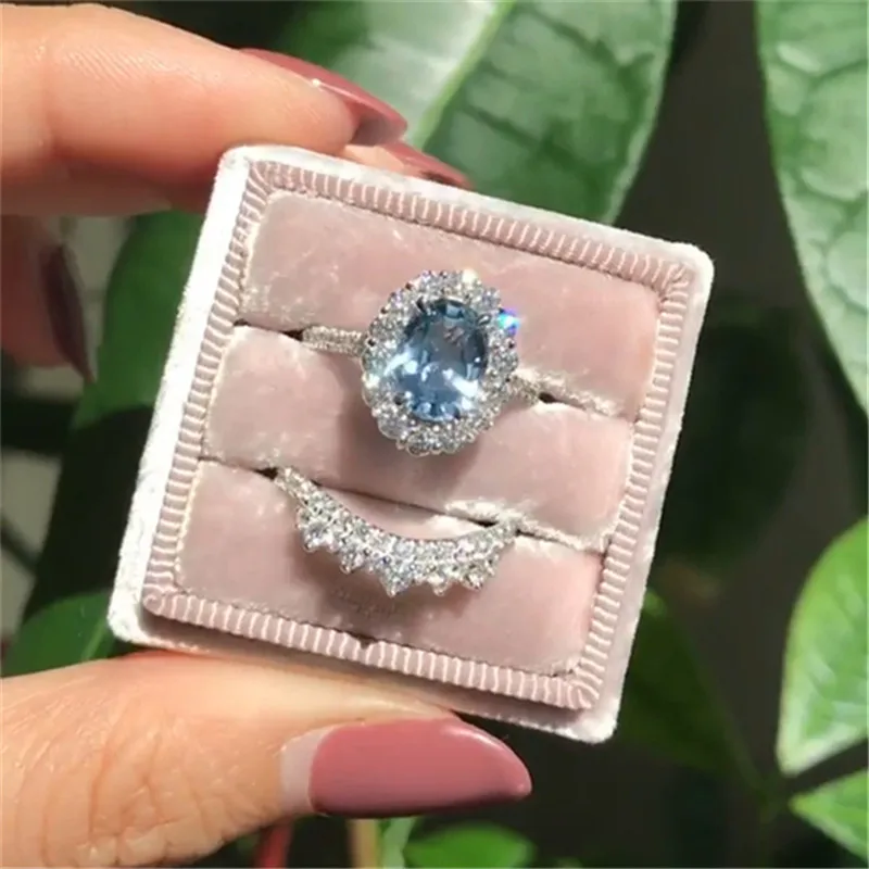 Модные обручальные кольца овальной формы, набор женских обручальных колец, ювелирные изделия вечерние ринки, кольца, Подарок на годовщину, 2 шт.компл.