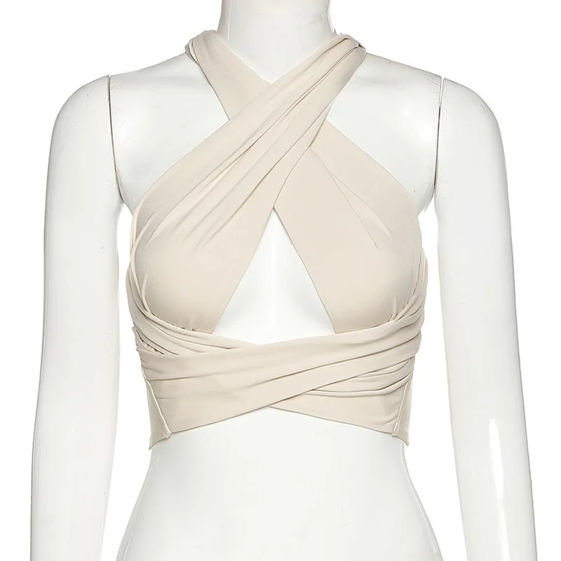 Женский укороченный топ Articat, сексуальный бандажный топ с лямкой на шее, с открытой спиной, с перекрещивающимися бретельками, вечерние Клубные майки, хит продаж