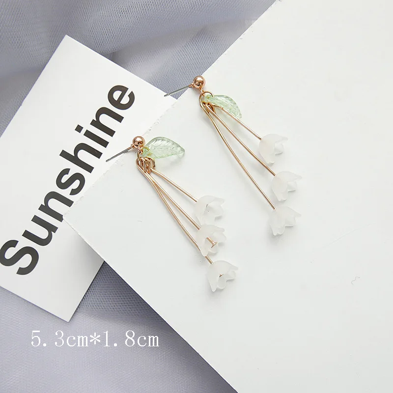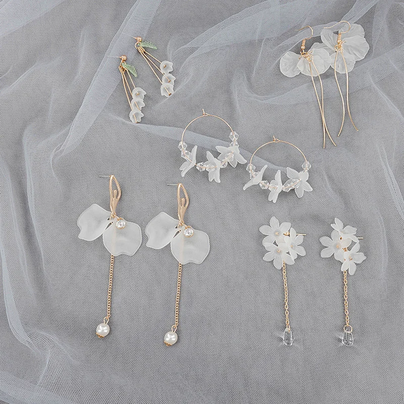 Корейская белая акриловая заколка, длинное платье с цветочным узором в виде лепестков, свисающие серьги для женщин, серьги 2021 новый милый сладкий нерегулярные кисточкой серьги модный подарок для ювелирных изделий