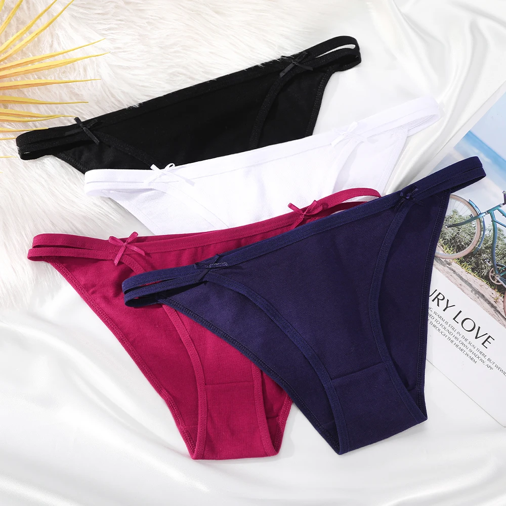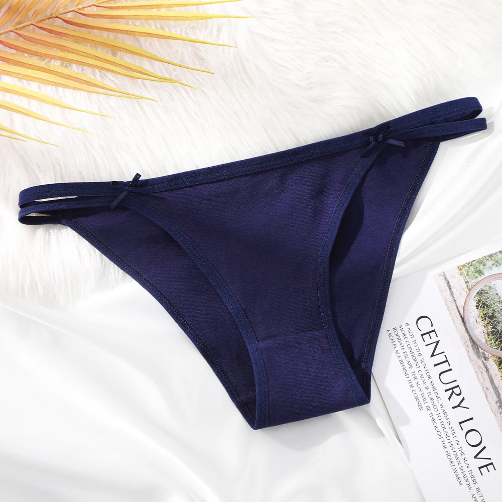 Трусы-стринги женские хлопковые с бантом, бесшовные, с Т-образной застежкой