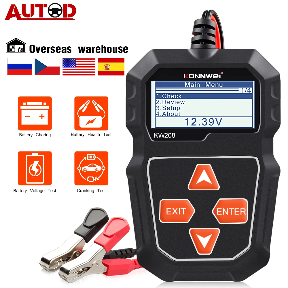 Тестер автомобильных аккумуляторов KONNWEI KW208, 12 В, от 100 до 2000CCA
