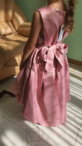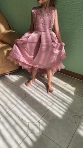 Очень классное платье. Осталась в восторге. Качество супер, есть кончено торчащие нитки, но это вообще мелочь. Размер 130, на рост 105см немного большевато, но не критично, к НГ как раз. Цвет красивый и качество рекомендую.