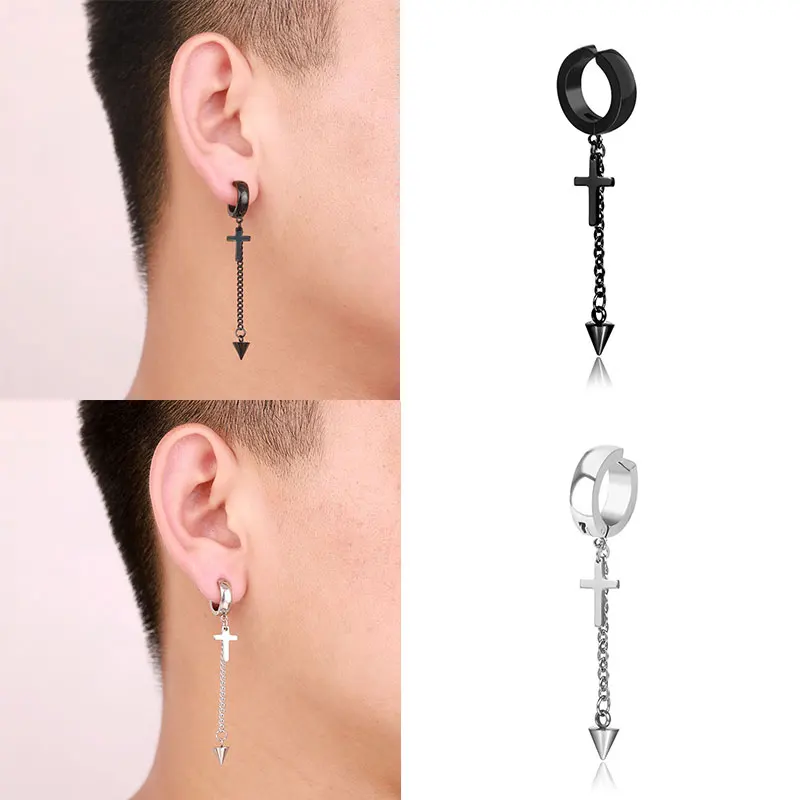 1 шт. подвеска в виде креста и звезд из нержавеющей стали в стиле панк, клипса для ушей, серьги без пирсинга для женщин, хип-хоп, модные мужские ювелирные изделия без отверстия для ушей