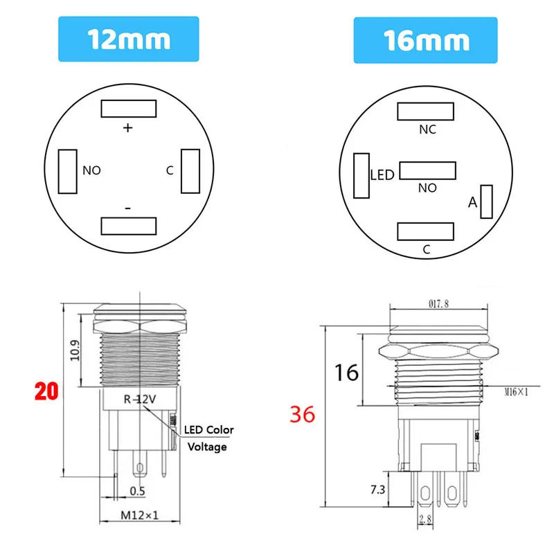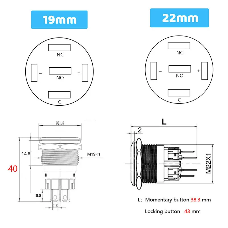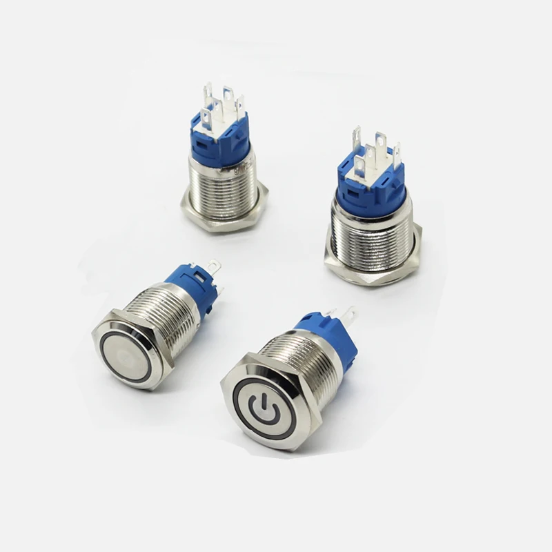 12161922 мм Водонепроницаемый металлический кнопочный выключатель светодиодный светильник Выключатель без фиксации двигателя автомобиля Мощность переключатель 5 В, 12 В, 24 В постоянного тока, 220V красные, синие