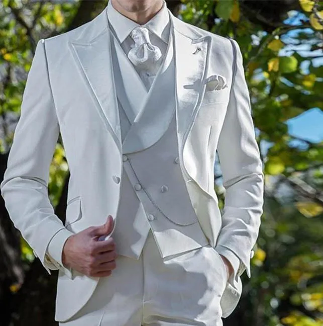 2021 Классический белый мужской костюм в итальянском стиле для жениха на свадьбу Выпускной индивидуальный официальный костюм Terno Masculino (пиджак + жилет + брюки)