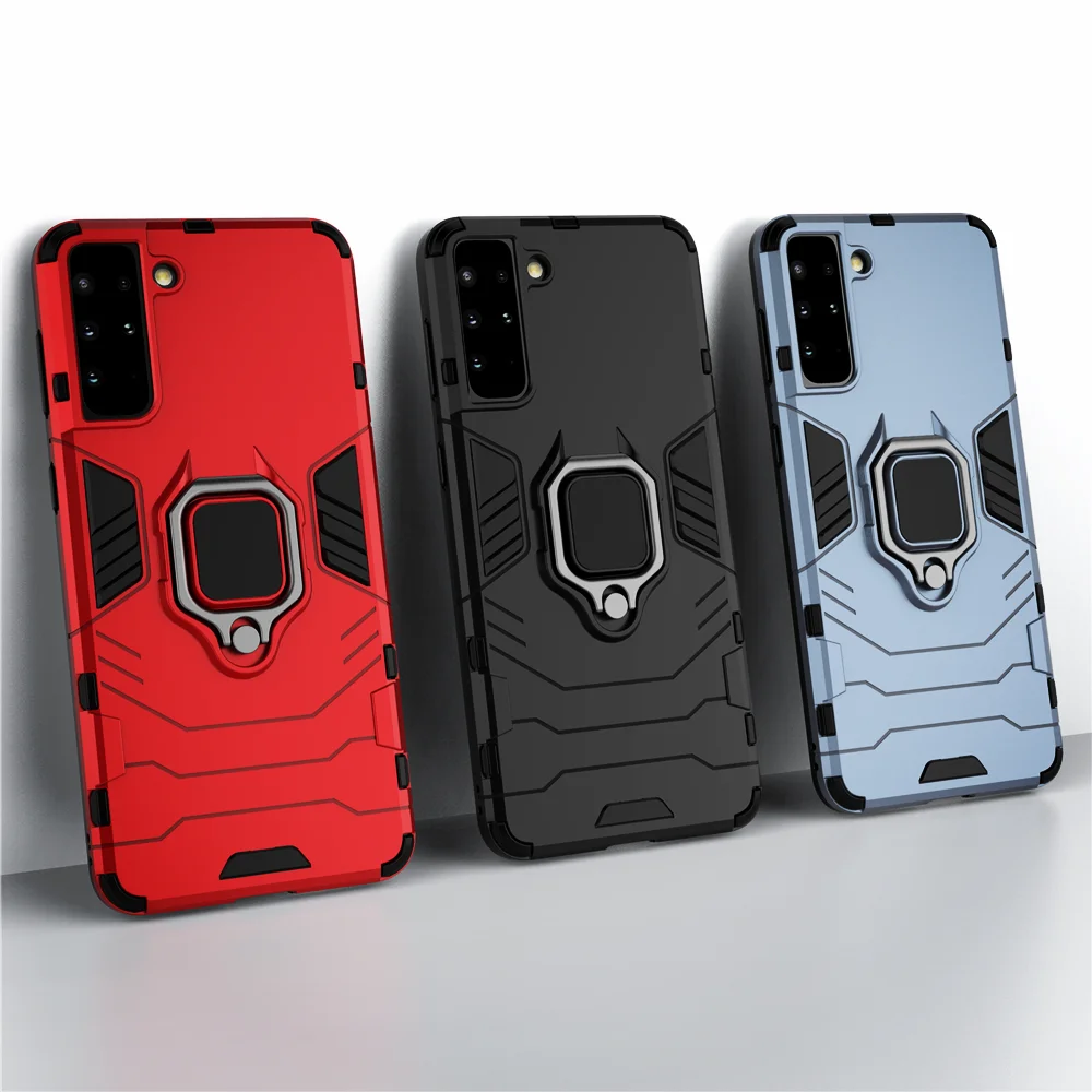 Чехол для Samsung Galaxy S21 Plus S21 + чехол S20 Ultra FE Note 20 Чехол-кольцо с подставкой, силиконовый бампер + чехол из ПК для Samsung S21 Ultra
