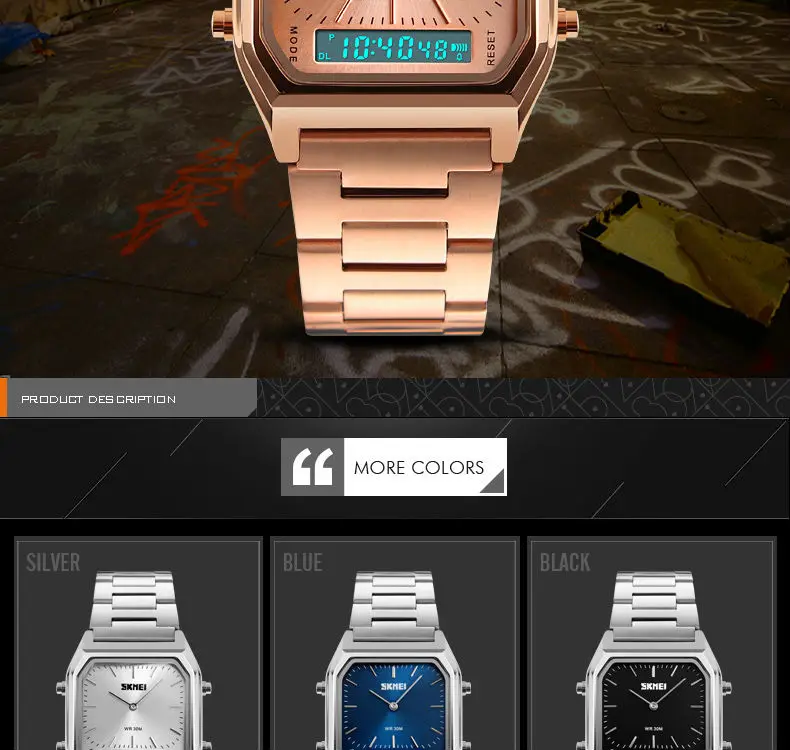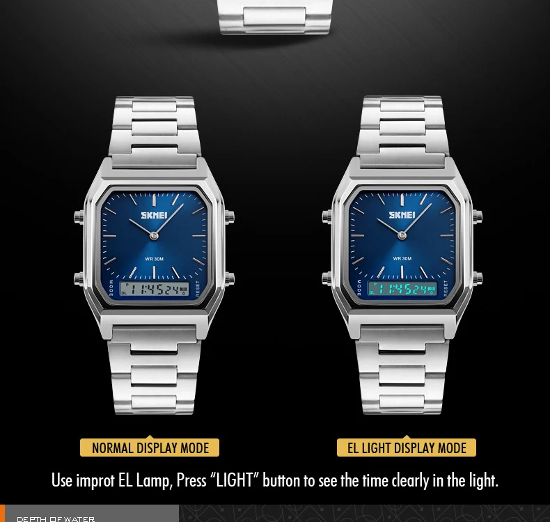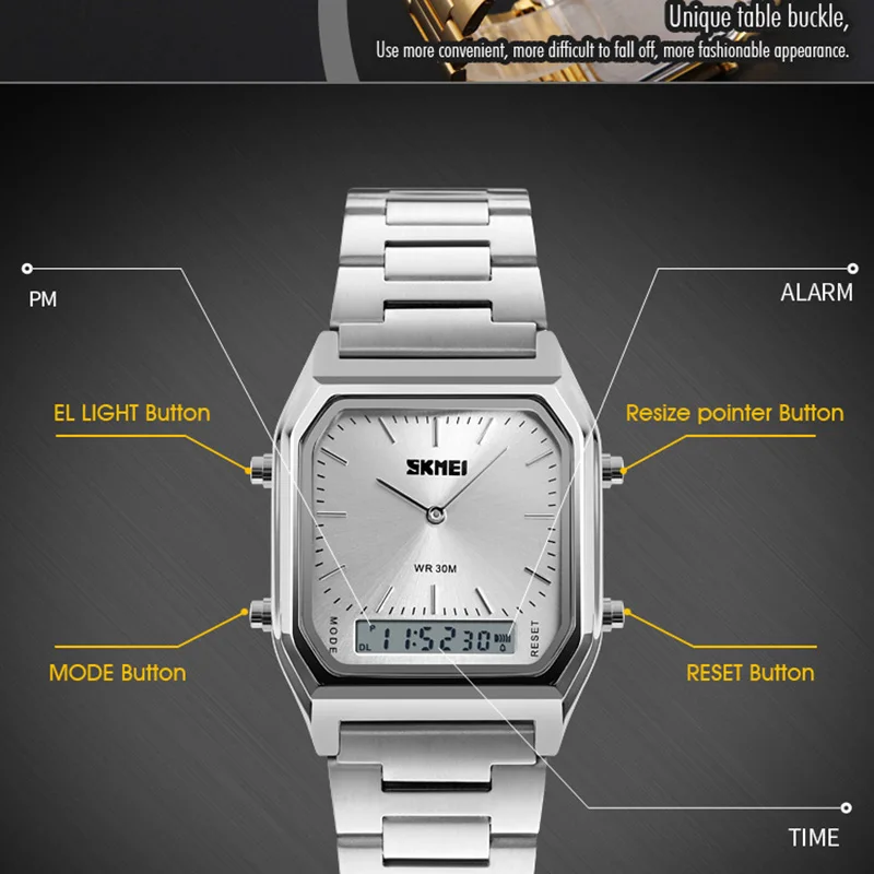 Часы мужские с двойным дисплеем, модные светодиодные цифровые водонепроницаемые из нержавеющей стали, с будильником и хронографом