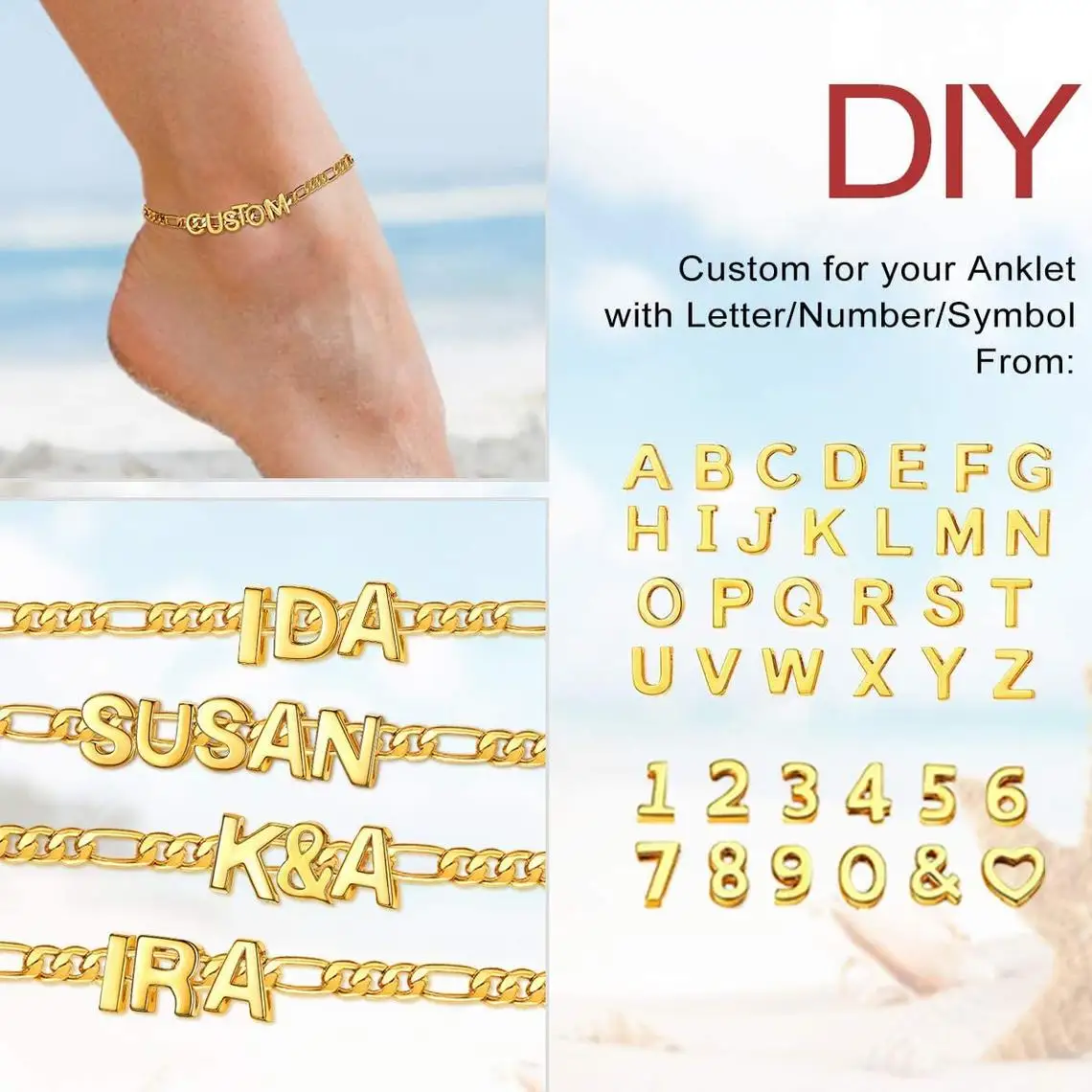 Ножной браслет с именем на заказ VishowCo, из нержавеющей стали, Летний Пляжный браслет кулон-табличка с именем, подарок на день матери