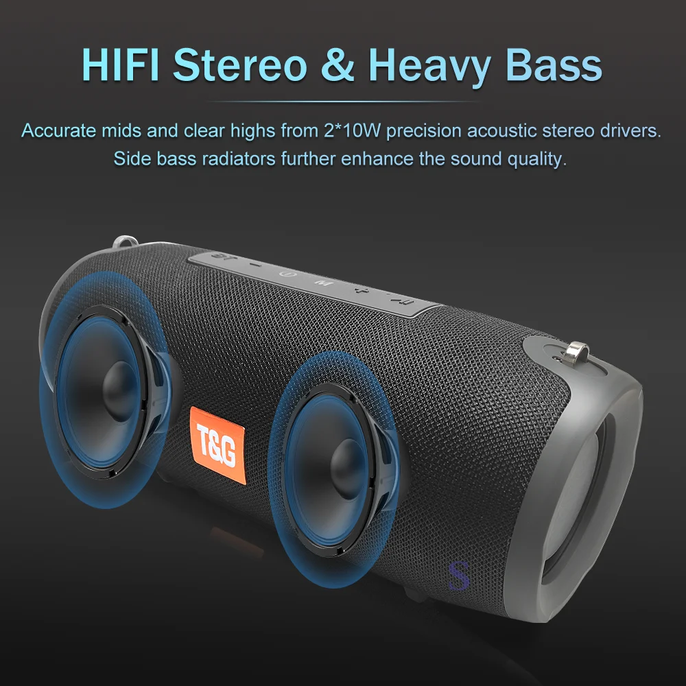 НОВЕЙШАЯ портативная Bluetooth Колонка высокой мощности 20 Вт, беспроводная стерео колонка с сабвуфером, музыкальный центр TG118 Soundbox