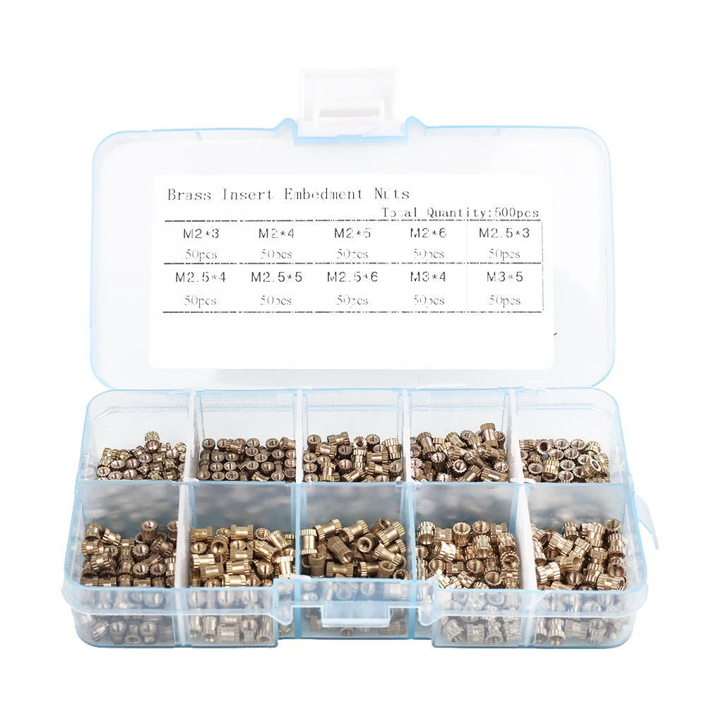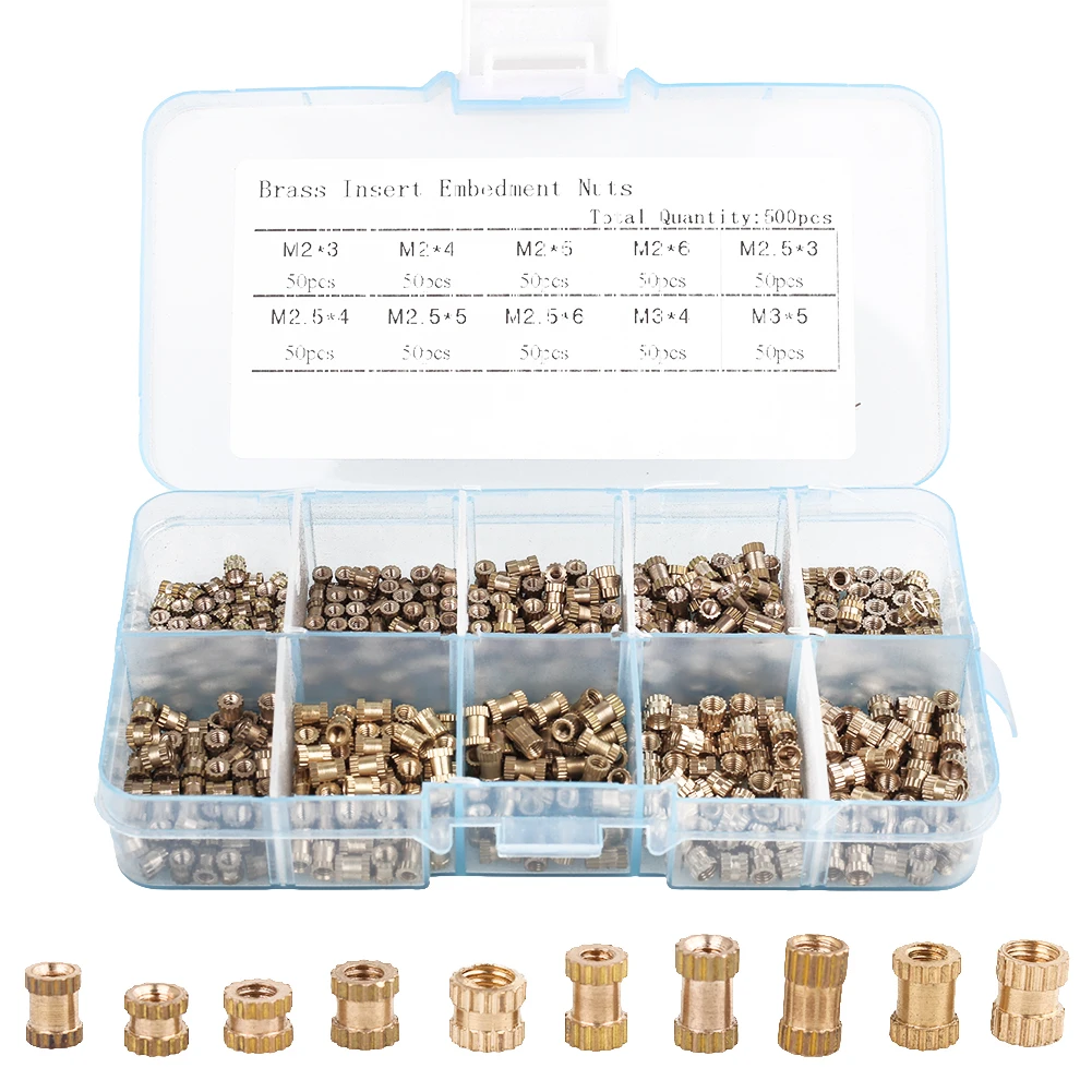 500 шт., набор рифленых гаек M2 M2 M2 M2 M2 M2 M2 M2 M2 M2 M2 M2 0, 3x0, 0 (OD), впрыскивающая гайка, медная вставка, рифленые гайки, аппаратные инструменты, крепеж