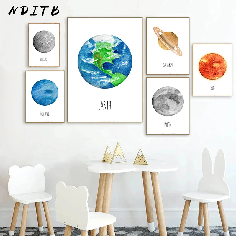 Ребенок Вселенная, космос, планета Печать холст картина солнце и луна земля детская художественная плакат малыш география образование номер Декор