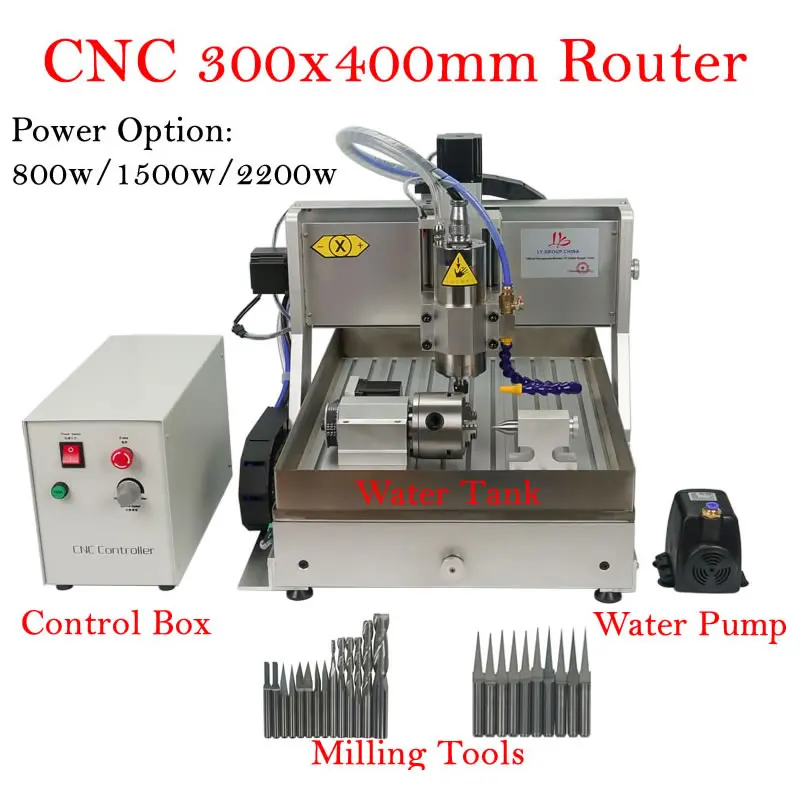 Гравировальный фрезерный станок LY CNC 3040, 80015002200 Вт, 4 оси, с USB-портом, резервуаром для воды и водяным насосом