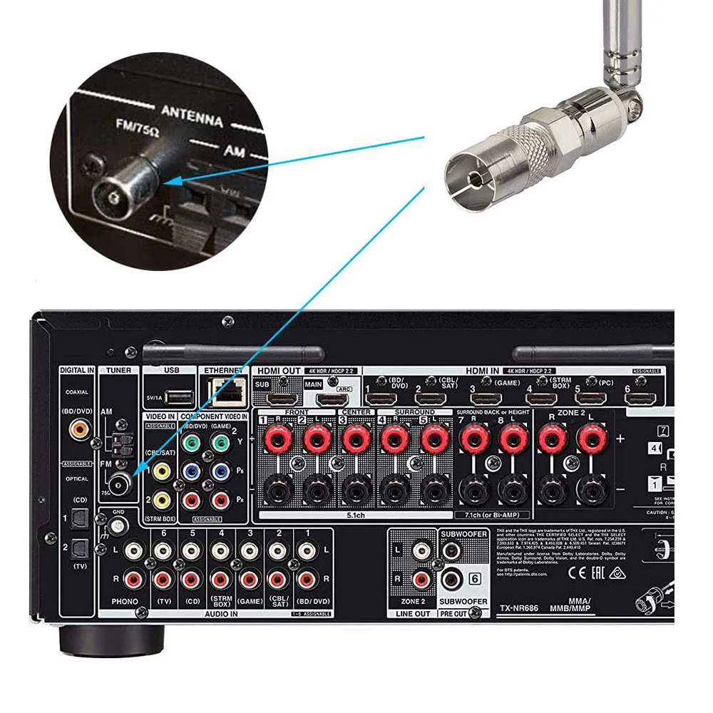 Восьмиугольная FM радио антенна AV Приемник 75 Ом Unbal F адаптер телескопическая антенна F к ТВ адаптер 2 комплект совместим с Tivoli Аудио модель аудио Sony Yamaha Denon Teac Pioneer onyo Marantz